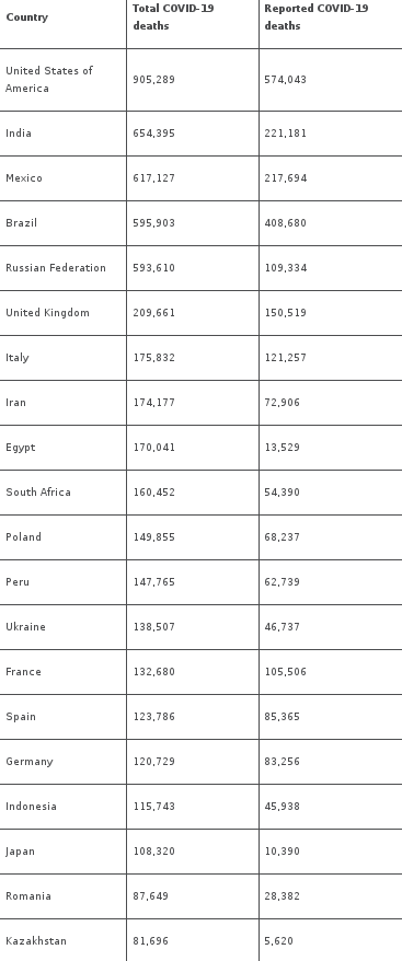 IHME я сразу отругал за эту оценку, посмотрев на Японию. Там вообще падение смертности, а ее записал в почти самые занижающие. В США тоже завышено, нет у них 900 тысяч