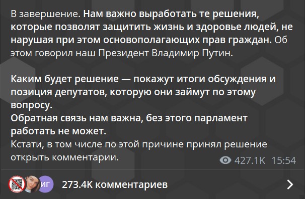 Телеграма у меня нет, так что комменты не вижу, но пишут, что их уже сотни тысяч, среди которых множество отрицательных. Явно готовят почву, чтобы дать задний ход.
