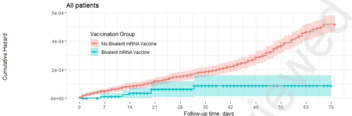 Бивалентный бустер не так давно появился, чтобы были надежные цифры для >120 дней, но похоже с учетом срока до последнего бустера, если сравнивать с моновалентным, у него эффективность против госпитализации остается на уровне по крайней мере 70-80 процентов для вариантов циркулировавших до последнего времени. И похоже, хорошие перспективы защиты против XBB.1.5
