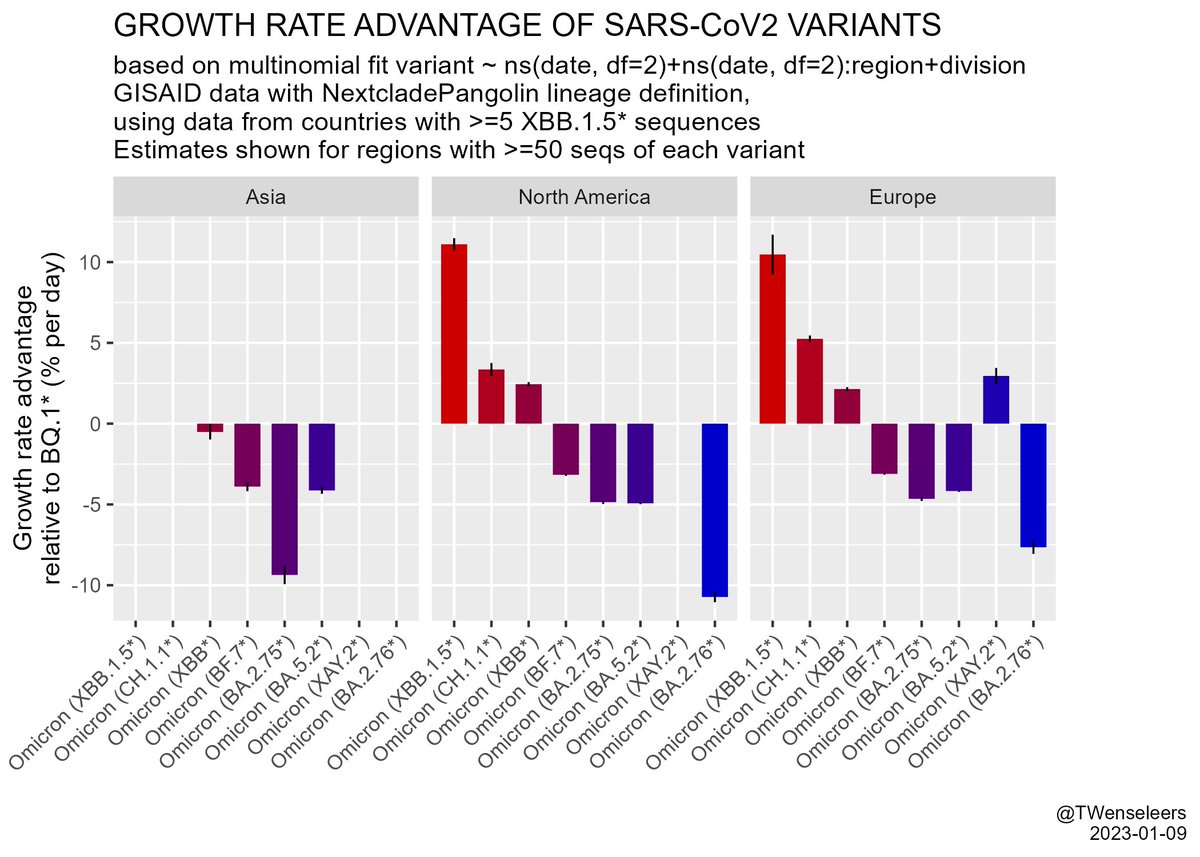...Also note the growth rate disadvantage of BF.7 & BA.5.2 - the most common lineages currently in China. Those variants - even if imported - would therefore not even be able to take off. |