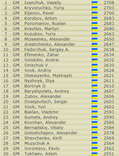 я же только заметил, что наверно впервые на первое место по рейтингу вышел гроссмейстер из Львова Юрий Криворучко. |
