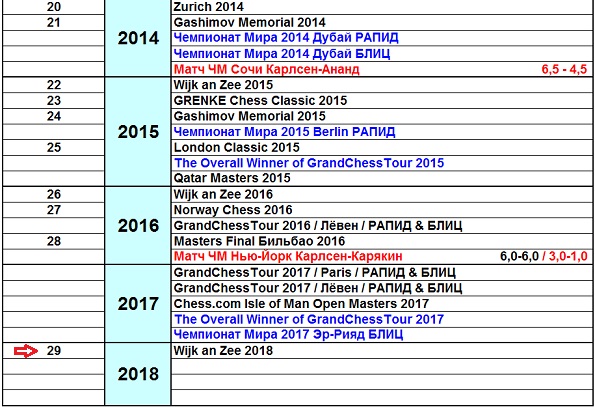 Jacob08: Это была рекордная шестая победа Магнуса в Вейке - см. исторический список победителей - а в целом его 29-я победа в супертурнирах.