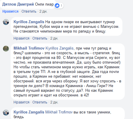 | ЯизГалича: Мы должны больше обсуждать Карякина, а не Крамника. У первого есть пиар менеджер, а у второго нет. |