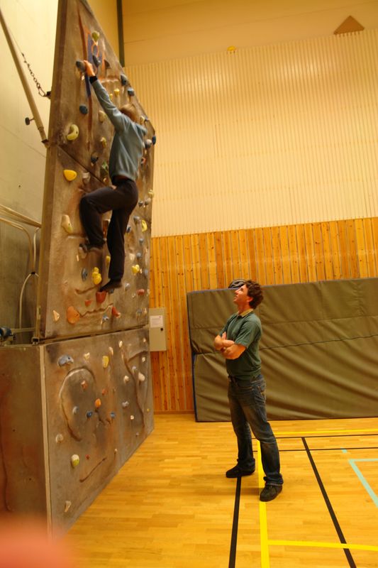 Вы смеетесь? Зачем страховка для лазанья по этой смешной детской стенке?)) Я в детстве по заброшенной стройке с друзьями лазал - 6 этажей без полов, крыши и везде всё рушилось, а тут.. |