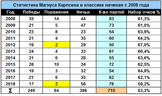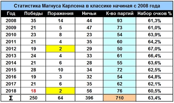 Количество побед Карлсена в 2018 году было 18 => подправил табличку.)