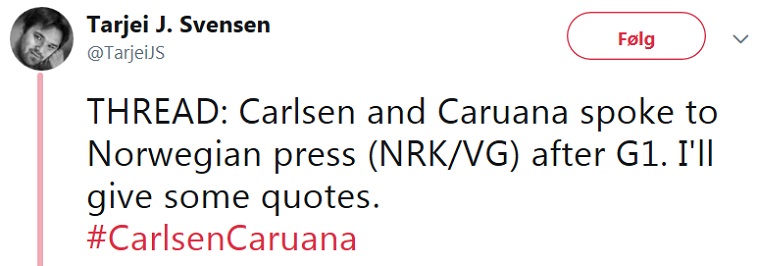 Я думаю, что Каруана просто был психологически не готов, вышел на партию в растрепанных чувствах, переволновался до. И ему повезло, что первый блин вышел комом, но без потерь. Дальше должен в более рабочий режим перейти |