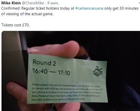 £70 tickets holders at the World Chess Championships are given a half hour slot to watch the players in the main theatre. Most are given two slots and after 6pm entry to the theatre is a free-for-all. #CarlsenCaruana |