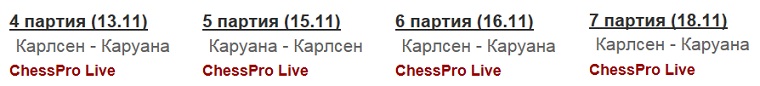 Итак, из следующих четырёх партиях у Карлсена белые - в трёх.