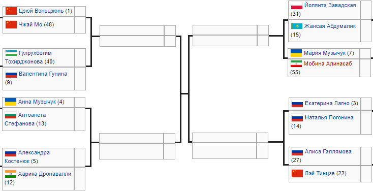 Здесь опять начала с 4-0. Имеет наивысший рейтинг в мире, вместе с Цзюй.