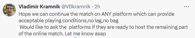 «Извините, меня не устраивает эта ситуация: подобное может повториться, и я не хочу даже пытаться. Я готов, хочу продолжить играть онлайн, и я очень надеюсь, что мы сможем найти решение»