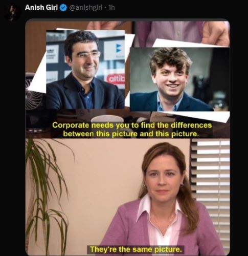 | Firouzja after defeating Nakamura: "He's very impressive. It's a pity I didn't play him when he was like 25, 26, I think it would've been a much greater match, much closer match probably... he's one of the legends, of course." |