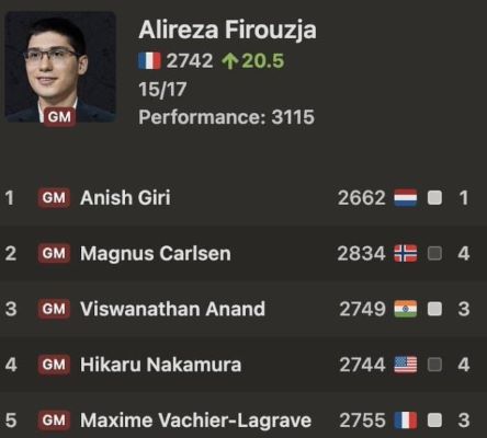 Alireza Firouzja is now in the Rapid World Top 5 after adding MVL to his list of victims!