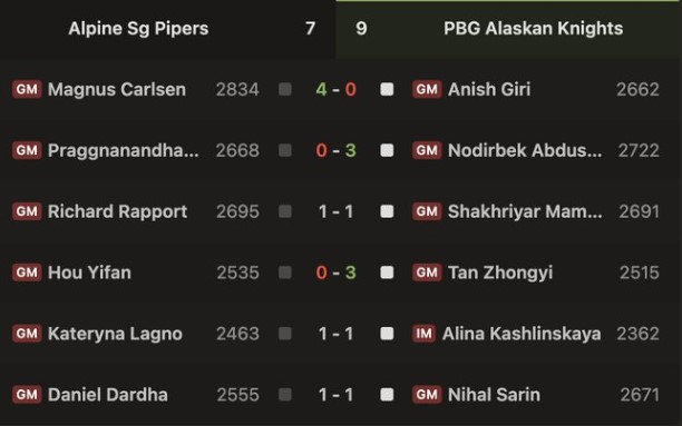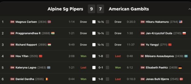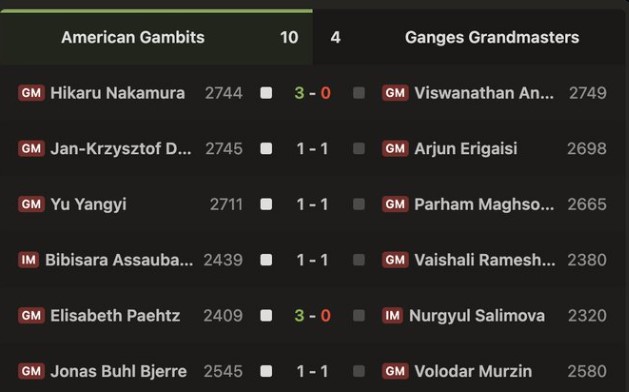 Hikaru Nakamura: "To be honest, I would have preferred not to flag Vishy and win the way I did, but at the end of the day it's a team event & we weren't doing so well, so I'm pretty happy with the result!"