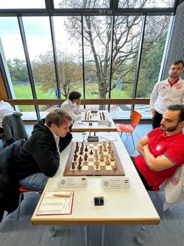 Direkt von der @SchachBL. Nach dem 4:4 gestern gegen Gastgeber Deggendorf geht es heute gegen den @FCBayern. Im Bild unsere Nummer 1 Matthias Blübaum, der heute gegen den Spitzenspieler der Bayern eine knifflige Aufgabe vor sich hat.