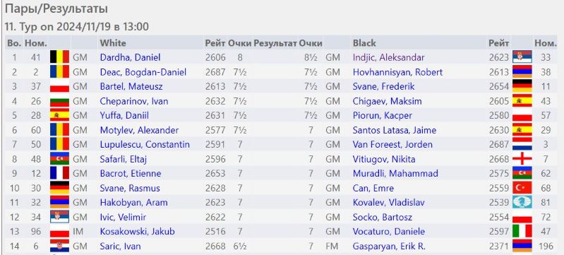 Чемпионат Европы. Непосредственно перед 10-м туром, предпоследним, выбыли 10 человек. Гроссмейстеров - пятеро: Фрессине, Фридман, Кадрич, Коробов, Пенг.