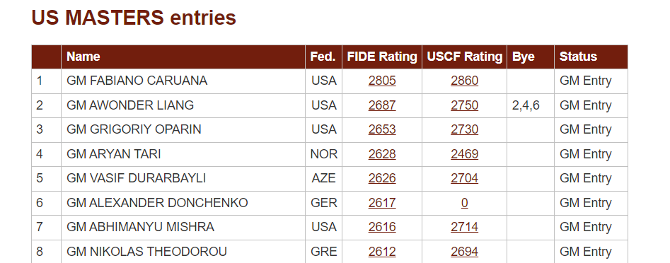 Now that we know the fields of both US Masters and Saint Louis Masters, Fabi can take a 20 point lead in #FIDEcircuit over Arjun if he wins both events.