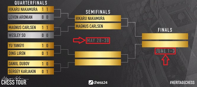 Это второй матч четвертьфинальной пары Карлсен - Со. Всего матчей предусмотрено три в каждой паре, Карлсен уже один выиграл. Если выиграет и второй - а все к тому идет - то он проходит в полуфинал, где его ждут еще три матча с еще одним отобравшимся тем же образом.