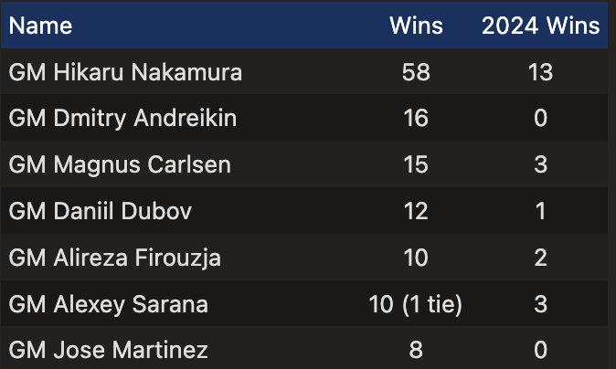 Например, некий Фирузджа, который его выиграл, обыграв в финале того самого Накамуру. А вот в титульных вторниках как-то не демонстрирует такого уровня, как Жоспем.