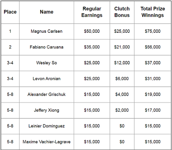| Magnus: "Fabi’s made incredible strides in rapid & blitz. He’s playing the next Magnus Tour tournament & I think he’s very much a force to be reckoned with... Judging by the way we played today he was as deserving a winner as I was & he deserves credit for a very good match" |