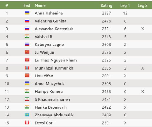 July 1 7:00 Round of 16 Harika Dronavalli - Anna Ushenina
