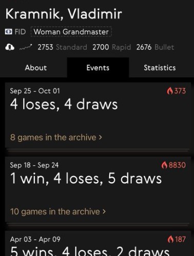 Даже Левитов Чесс как бы потерял интерес к деятельности Крамника? (давно не пересказывал новостей с переднего фронта, не рассказывал о новых цифрах)