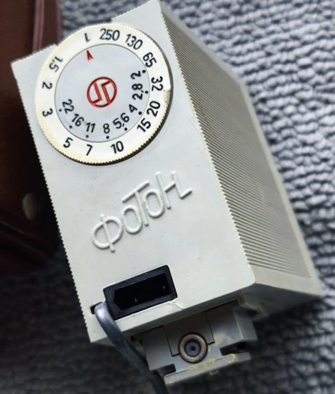 Вспышка Фотон за 19 рублей. Они были с расчетной таблицей или с колесиком, я взял с колесиком:
