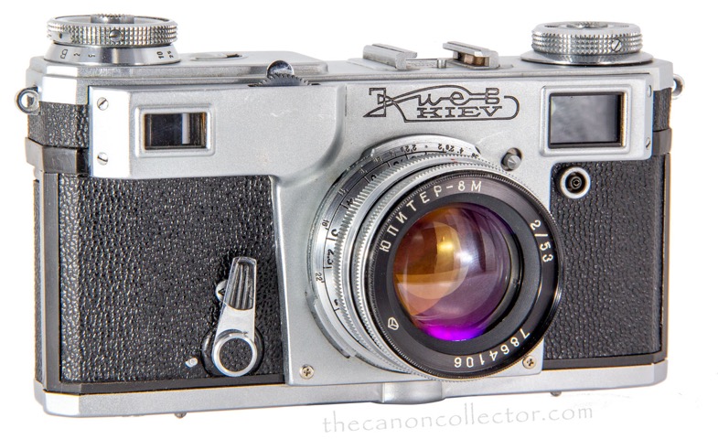 Я пока собирал деньги в надежде, что кто-то сдаст в комиссионный магазин Зенит-Е, который бы я смог купить до 100 рублей, но этого не произошло. Деньги я собирал по крохам, выпрашивая папину заначку, экономя на школьных завтраках итп. Когда я собрал 90 рублей, то больше ждать уже не мог и купил дальномерный «Киев-4а». Эти камеры были аналогами немецких Contax II. Кроме денег меня в нем привлекли уникальный диапазон автоматических выдержек от 1/2 сек до 1/1250, очень надежная механика, металлический пластинчатый затвор, хороший объектив «Юпитер-8М» с оливковым просветлением, не дающем синеву, диафрагма была от 2 до 22. Но крепление объектива без резьбы - байонетное.