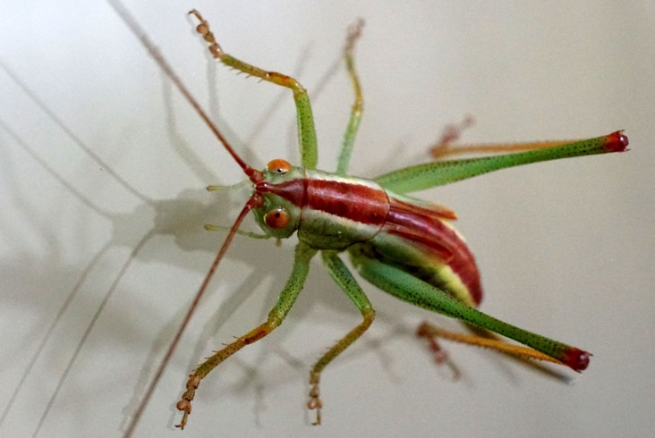 В США, конечно, тоже есть какие-то кузнечики, но у себя на участке я видел один раз только такого, причем он спокойно сидел на откосе двери: