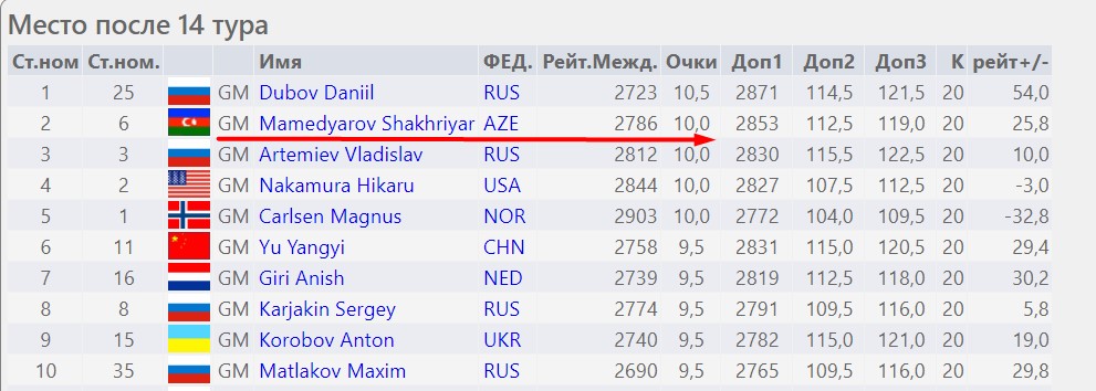 Если никого не пропустил из шахматистов местом пониже, то только трое обошлись без поражений - чуть больше, чем в прошлом чемпионате, где без нулей оказались двое (победитель Ананд и Бу). Кроме победителя Дубова вроде только Гири и Карякин не проиграли в этом соревновании. |