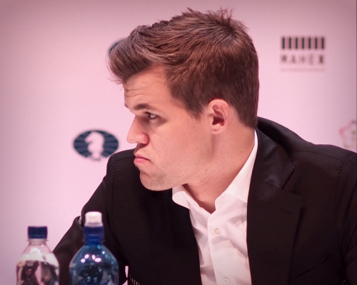 Чемпион с выражением глубокого одобрения слушает выступление своего соперника по матчу-2016