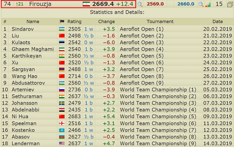 15-летний GM Алиреза Фируджа из Ирана, текущий рейтинг которого 2660,0 вышел на орбиту Карлсена в его возрасте.