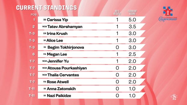 | Карисса Йип только что одержала свою 6-ю победу подряд в женском чемпионате США по шахматам! За 5 туров до конца ее выступление просто невероятное. |
