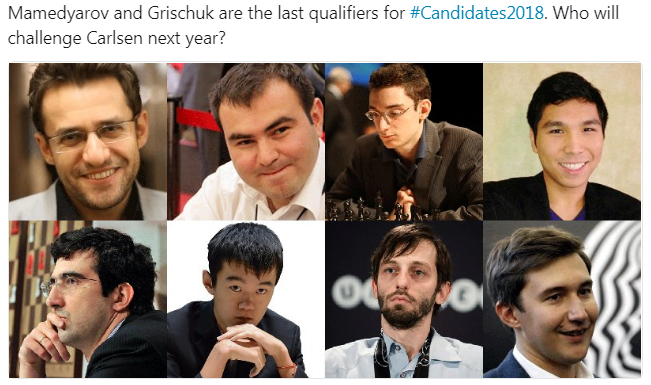 | Вот говорят, малая текучка наверху, а за 2 года из 7 участников (Каруану считать неверно, как победитель он гарантировал себе место в следующем турнире сразу в случае поражения) только 2 человека сохранили места. |