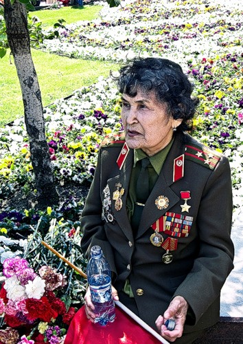 «9 мая 2011 года. Сначала я увидел ее лицо и сразу вспомнил прошлогодний снимок. Но потом посмотрел на форму и, не знаю как вы, но я несколько опешил. Давно находясь на заслуженном отдыхе, в преклонных годах бабуля за год успела получить (судя по погонам) звание генерал-майора», — пишет acserg51. Он также отмечает появившийся у пенсионерки за год орден Героя Социалистического труда, которым не награждают уже более 20 лет.