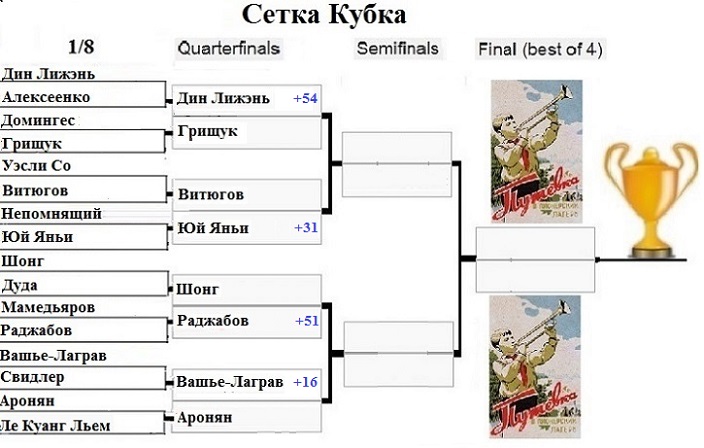 Так что Грищук побеждает в полуфинале Витюгова, а Левон обыгрывает Шонга. |