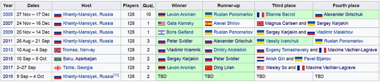 (Кстати,несколько раз на форуме отмечали, что ни разу рейтинг-фавориту не удалось до сих пор выиграть КМ) |