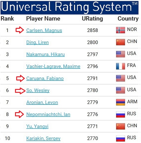 Jacob08: Ф.Рэндом (кл.,рапид,блиц) учитывают как и другие рейтинги единым комплексным показателем в URS с 2018 года, но, разумеется, лишь за результаты на деревяной доске. Например Свидлер, Нака, Фаби и Уэсли только что слегка прибавили ввиду матчевых побед над Домингесом, Левоном, Гарри и Веселином.