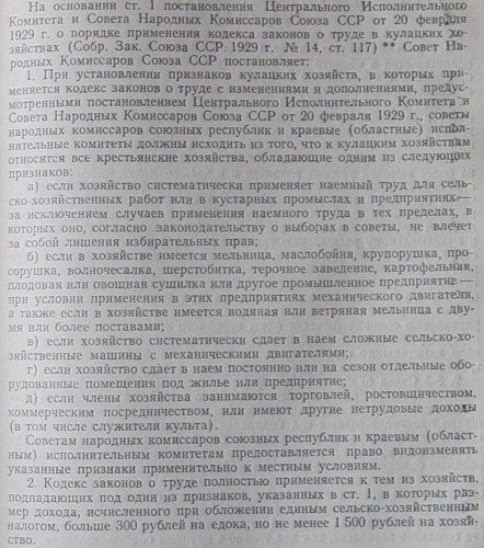 "К кулацким хозяйствам относятся все крестьянские хозяйства, обладающие одним из следующих признаков"