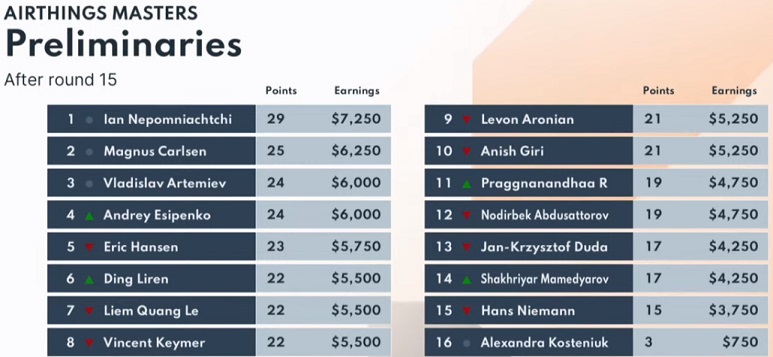 | Букмекеры намного более адекватно шансы оценивают. На проход Карлсена 1,15 было, Непомнящий 1,25, Есипенко 1,45. |