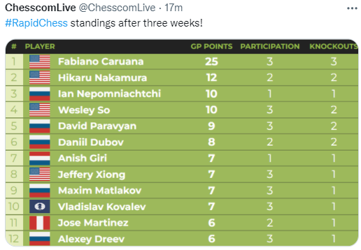 Фабиано Каруана занял первое место во втором из серии еженедельных турниров чемпионата по рапиду 2022, проходящих на Chess.com при поддержке Coinbase.