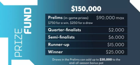 Призовой фонд турнира - $150К. Из этой суммы $60K разыгрываются в нокауте (между восьмеркой победителей Prelims), а $90K - в самом Prelims (между всеми 16-тью участниками).