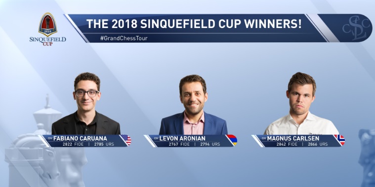 В Кубоке Синкфилда 2018 предполагалось проведение тай-брейка в дополнительный день, однако длительные переговоры организаторов с Ароняном, Каруаной и Карлсеном привели в итоге к тому, что все трое, как исключение, были объявлены победителями турнира.