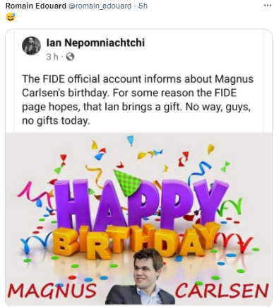 На счет ДР Магнуса с утра была запущена такая шутка, но кто её "сфабриковал" - не знаю