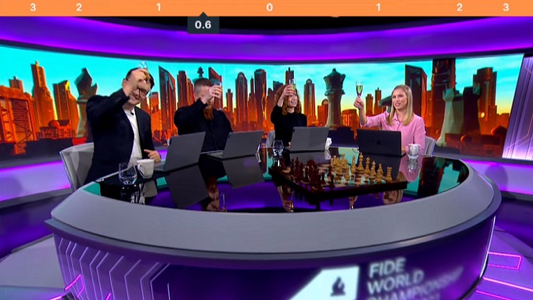 Комментаторы празднуют побитие мирового рекорда.