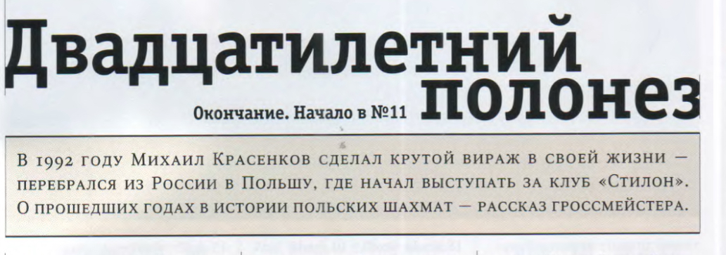 Да я, собственно, об этом (и вообще о развитии польских шахмат с начала 90-х гг.) рассказал в своей статье в "64" в 2012 году (№11 и 12, называется "Двадцатилетний полонез"). Желающие могут найти те номера (увы, не в интернете: "64" себя как издание ценит и в сеть не выкладывает).
