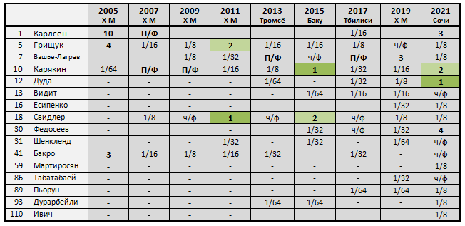 Впрочем, если интересуют аналогичные результаты других игроков, ранее вычеркнутых из первоначальной версии таблицы (или вовсе в неё не включенных) - только скажите.
