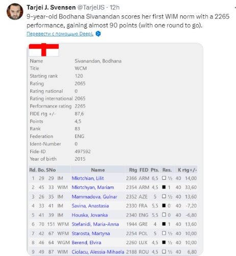 15-летняя WCM Божена Пиддубна победила ММ Сабрину Вегу Гутьеррес и набрала 4,5/5 очков на чемпионате Европы по шахматам среди женщин 2024!