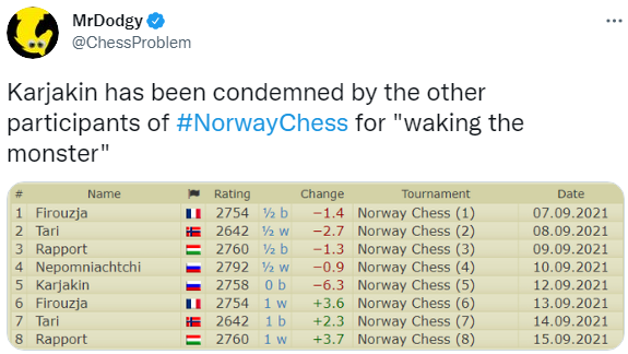 | Почитатель: А кто не думает по-другому? Все не думают одинаково | После 9 тура уже изменение рейтинга у Магнуса становится + 0,7 . |