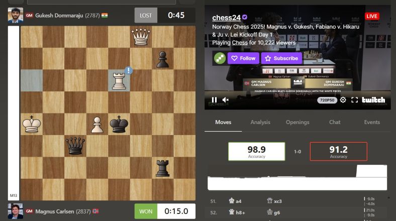 Какая невероятная игра была у Карлсена, с оценкой точности 98,9! Просто безумно точная игра.
