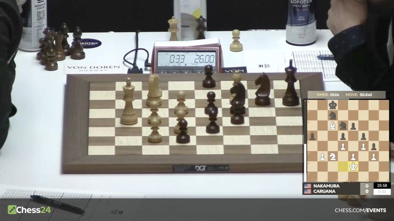 У Каруаны осталось 33 секунды против 25 минут в сложной позиции, с добавлением всего 10 секунд на ход до конца партии!